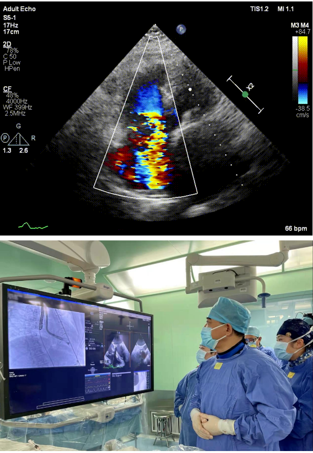 本次接受治療的患者是一名74歲的女性,14年前因風濕性心臟病行二尖瓣生物瓣植入術,合并房顫。近3年來反復因腹脹、納差、下肢水腫入院,藥物治療欠佳。心臟超聲顯示三尖瓣極重度反流(有效反流口面積:0.76cm²,反流容積:79ml),繼發性右房室增大及上、下腔靜脈增寬(右房上下徑*左右徑:52*41mm,右室左右徑:46mm,下腔靜脈:29mm),右室收縮功能正常,肺動脈收縮壓 43mmHg,左心室射血分數73% 。患者既往開胸手術史,術前評估STS 評分為7.02分,CRS 9分,無法接受體外循環下三尖瓣外科手術。面對這一傳統治療無法解決的困境,葛均波院士及其團隊周達新教授、潘文志教授、張源博士、陳莎莎博士及心超室的潘翠珍教授、李偉教授經過討論決定,采用創新的Lux-Valve Plus系統為患者進行經血管三尖瓣置換。