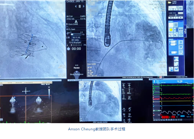 術前Anson Cheung教授與上海復旦大學附屬中山醫院葛均波院士團隊周達新教授及上海長海醫院徐志云團隊陸方林教授一起,對患者病情進行了細致的分析和討論。四位患者均為不適宜外科手術的高危患者,病因復雜,基礎狀態差;其中一位患者曾接受心臟移植,另一位患者已近九旬高齡。現四位患者均已順利完成手術,首日接受手術的兩位患者已于術后24小時之內出院,今日接受手術的兩位患者亦恢復良好,預計明日出院。