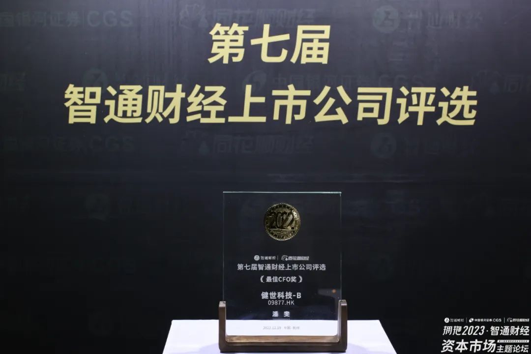 “最佳CFO”獎項根據公司首席財務官與資本市場投資者們的積極溝通互動,由港股通主要機構投資者們參與評選,通過“網絡投票+專家評審團審議+大數據分析”的方式,綜合評選得出的最終結果,旨在表彰公司在資本市場上所展示出來的發展潛能,體現資本市場對于公司首席財務官在財務管理、信息披露以及投資者活動等工作的肯定。健世科技CFO潘斐先生榮膺本屆“最佳CFO”獎項。