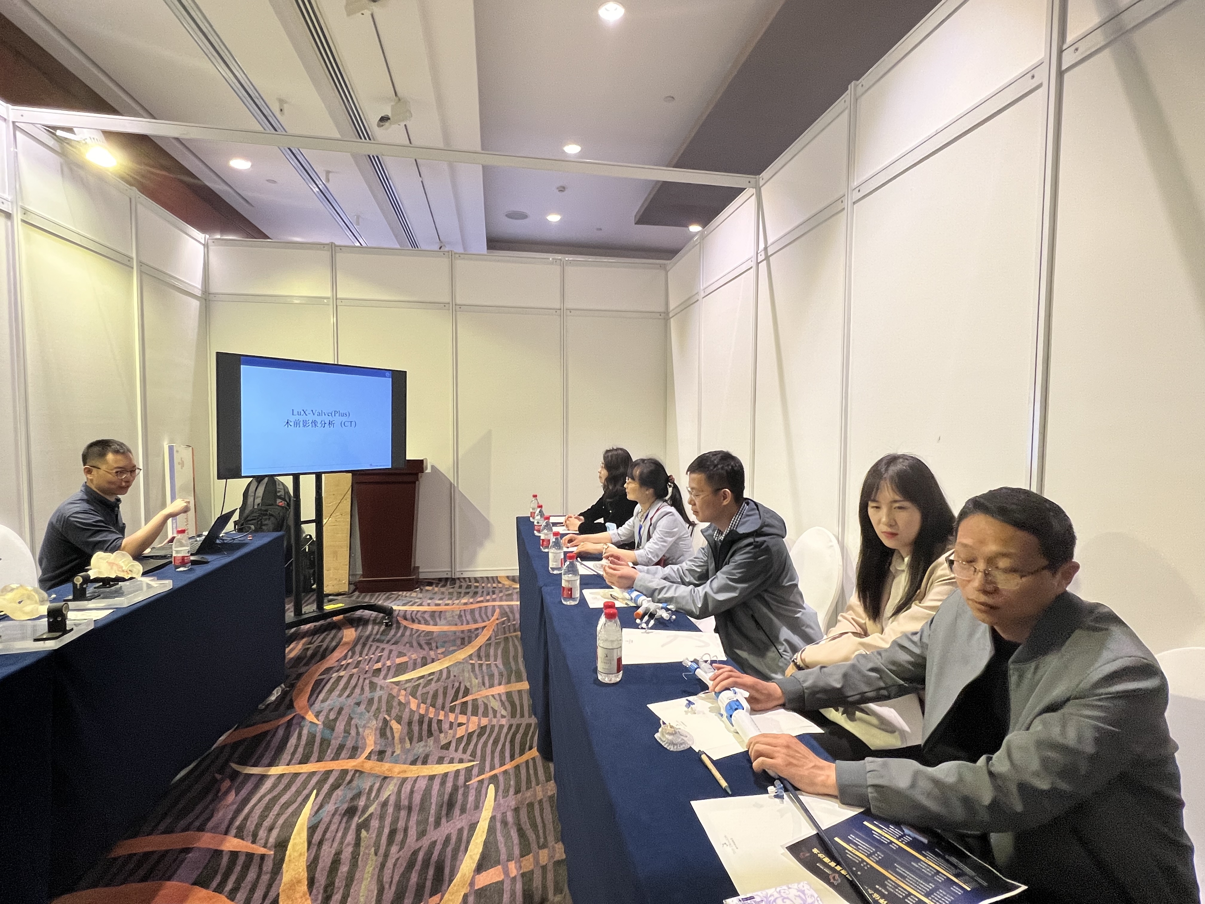 LuX-Valve三尖瓣培訓工坊也給各位參會的國內外專家進行了產品細節介紹與展示,現場各位專家也對健世科技LuX-Valve及LuX-Valve Plus三尖瓣置換產品的使用及操作要點充滿了學習熱情,并與現場的技術人員進行了深入的交流與討論。