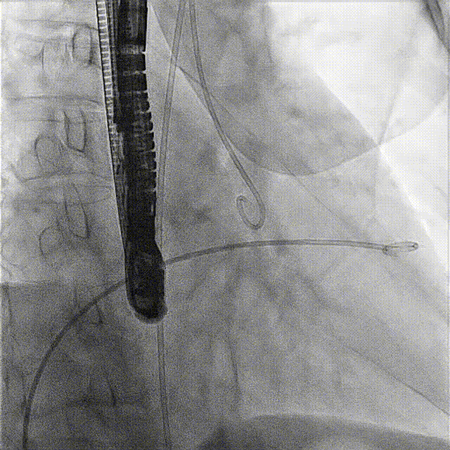 接受手術的為一名80歲男性,因“心悸2年,氣喘伴下肢水腫半年”入院。超聲心動提示“極重度三尖瓣反流,右房及右室明顯擴大,右心收縮功能輕度減低,左心收縮功能正常,肺動脈壓力正常”。患者同時合并有“持續性房顫”及“慢性心力衰竭”,病史持續2年,規律口服抗凝及強心、利尿治療治療效果不佳,癥狀持續。經廈心心臟團隊評估后,認為患者三尖瓣極重度反流并伴有心衰表現,長期內科藥物治療效果不佳,且患者高齡、外科手術風險高,因此決定采用微創經頸靜脈LuX-Valve Plus三尖瓣置換系統為患者治療。