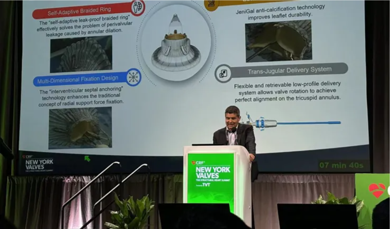 來自美國紐約蒙特法沃醫療中心(Montefiore Medical Center, New York, U.S.)的Azeem Latib教授在分享TTVR研究時高度贊揚LuX-Valve Plus。他在分享中講到,TTVR器械能完全消除三尖瓣反流,并且顯著改善癥狀和生活質量,能夠成為第一線的治療方式。其中,LuX-Valve Plus的30天數據顯示94.1%的患者反流等級降低至2+及以下,88.3%的患者NYHA心功能等級恢復至I/II級。與此同時,一些TTVR器械的臨床試驗也出現了較高的嚴重出血率和較高的起搏器植入率,然而LuX-Valve Plus卻依然展現了較低的起搏器植入率。在最后,Latib教授總結道,正確的患者及器械篩選,以及合適的學習曲線可以有效降低并發癥。