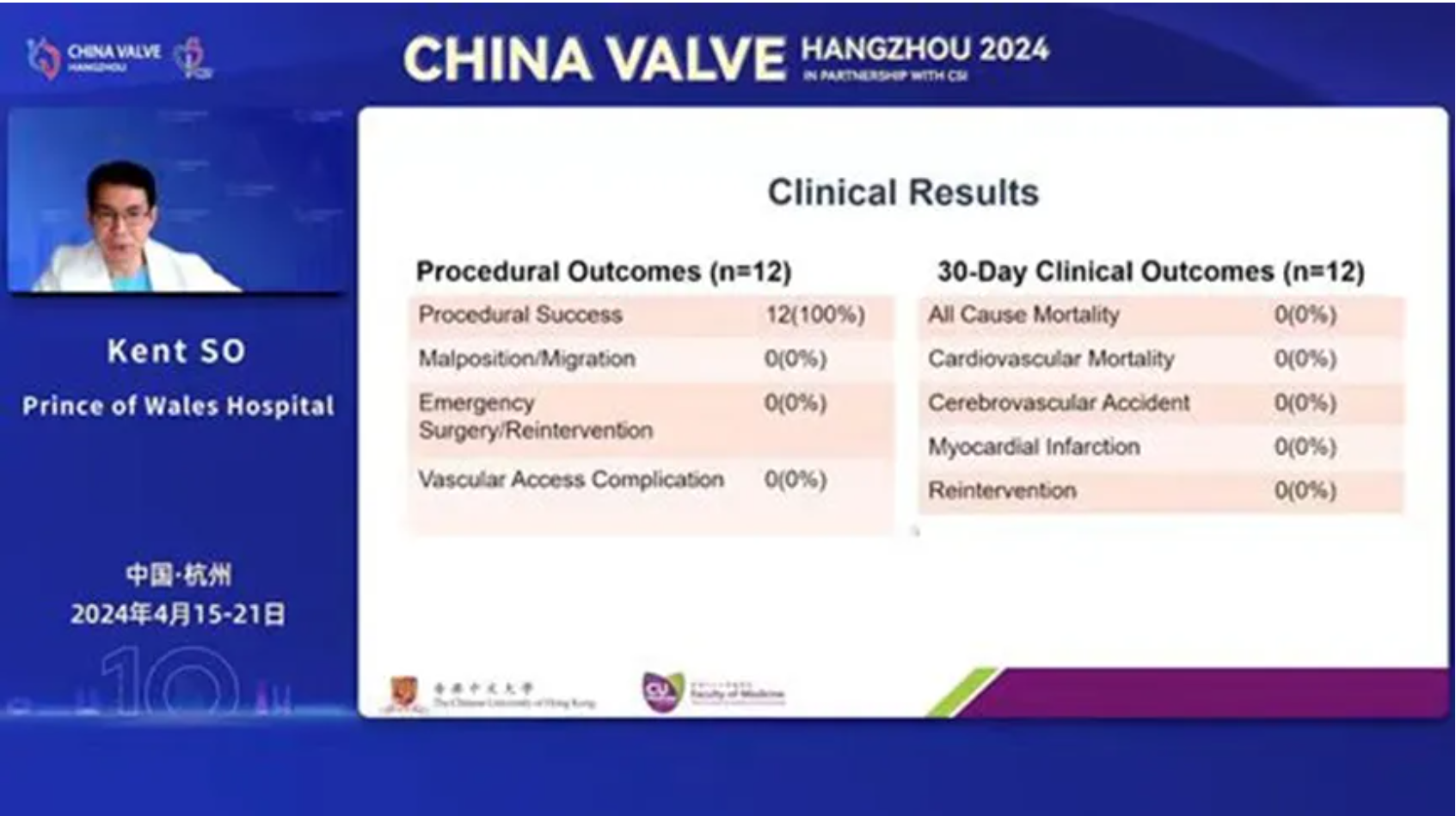 LuX-Valve Plus早期在香港的臨床數據和經驗由來自中國香港威爾斯親王醫院(Prince of Wales Hospital, Hong Kong, China)的Kent SO(蘇澤宇)教授在2024杭州瓣膜會上進行了分享,并且指出這是一款有潛力的TTVR器械,能覆蓋較廣范圍的三尖瓣瓣環尺寸并帶能降低起搏器的植入率,展現了良好的術中和短期治療效果。
