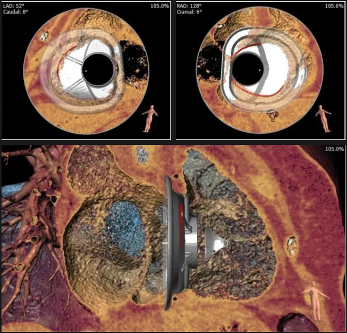 我們可以看到整個手術過程中,LuX-Valve Plus輸送系統的進入是非常順滑的,并且該病例巨大的瓣葉間隙,對于傳統的TEER療法和環縮術式是非常大的挑戰,因此三尖瓣介入置換是非常好的選擇。術中王焱院長團隊通過多次的人工瓣膜軸向調整,取得了非常好的封堵效果。室間隔錨定的設計也非常的巧妙,通過非徑向支撐的方式解決了三尖瓣假體瓣膜錨定的難題。再次恭喜王焱院長團隊順利完整這臺挑戰性的手術。