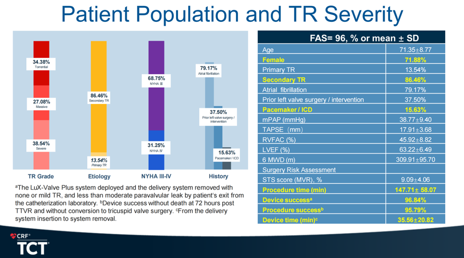 近期,LuX-Valve Plus在2024美國經導管心血管治療學術會議(TCT 2024)上,正式全球公布了TRAVLE II 臨床試驗研究1年期隨訪結果,這是繼今年6月紐約瓣膜會(New York Valves 2024)6個月隨訪結果公布后的再一次重磅成果分享,展示了經導管三尖瓣介入置換領域的重大研究發現,其結果令人矚目。