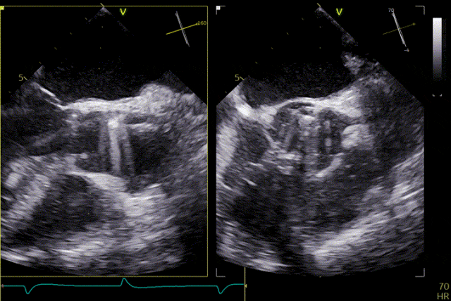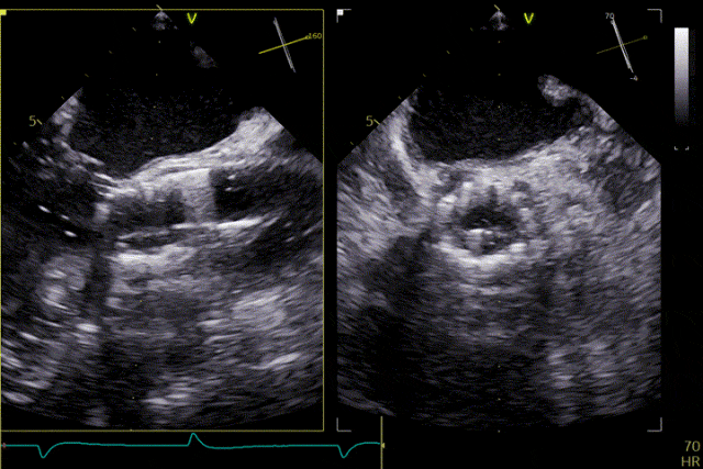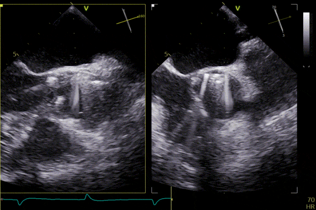 在超聲引導下,手術團隊高效精準地完成了瓣膜的定位、釋放與功能評估。手術過程順利,夾持件入竇與定位一氣呵成,三枚夾持件的釋放與錨定位置與術前評估完全一致,器械操作時間約5分鐘。術中超聲評估顯示無瓣周漏,血流動力學表現穩定,手術過程順利。